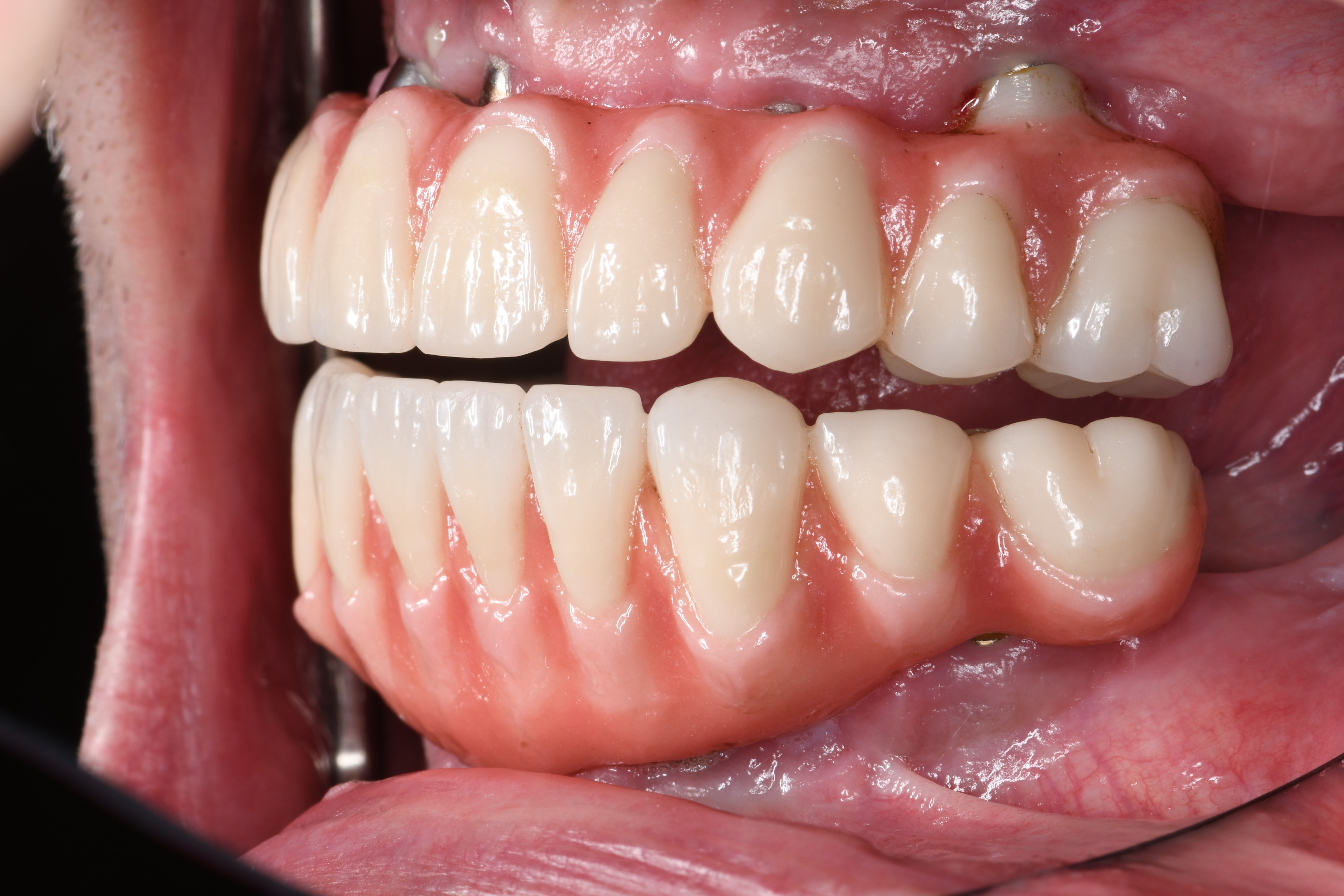 View of left side with teeth partially open.